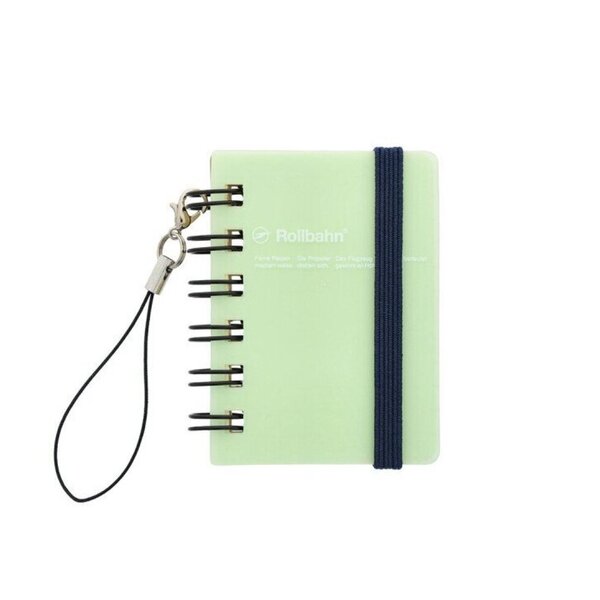 This is a reissue of the super popular micro size. All the features of a standard Rollbahn (5mm perforated pages, etc).. just tiny! Use as a charm or a keychain.. or just a notebook in a pinch. [please note: the clear pages usually featured at the back of the Rollbahn are absent] 60 pages