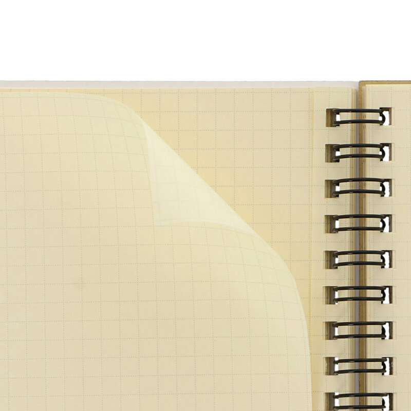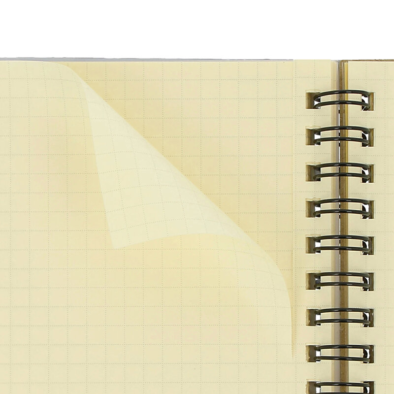 Thick cover stock, high-quality 5mm grid pages in signature cream shade, 5 clear pockets at back. 120 - 160 pages depending on size.