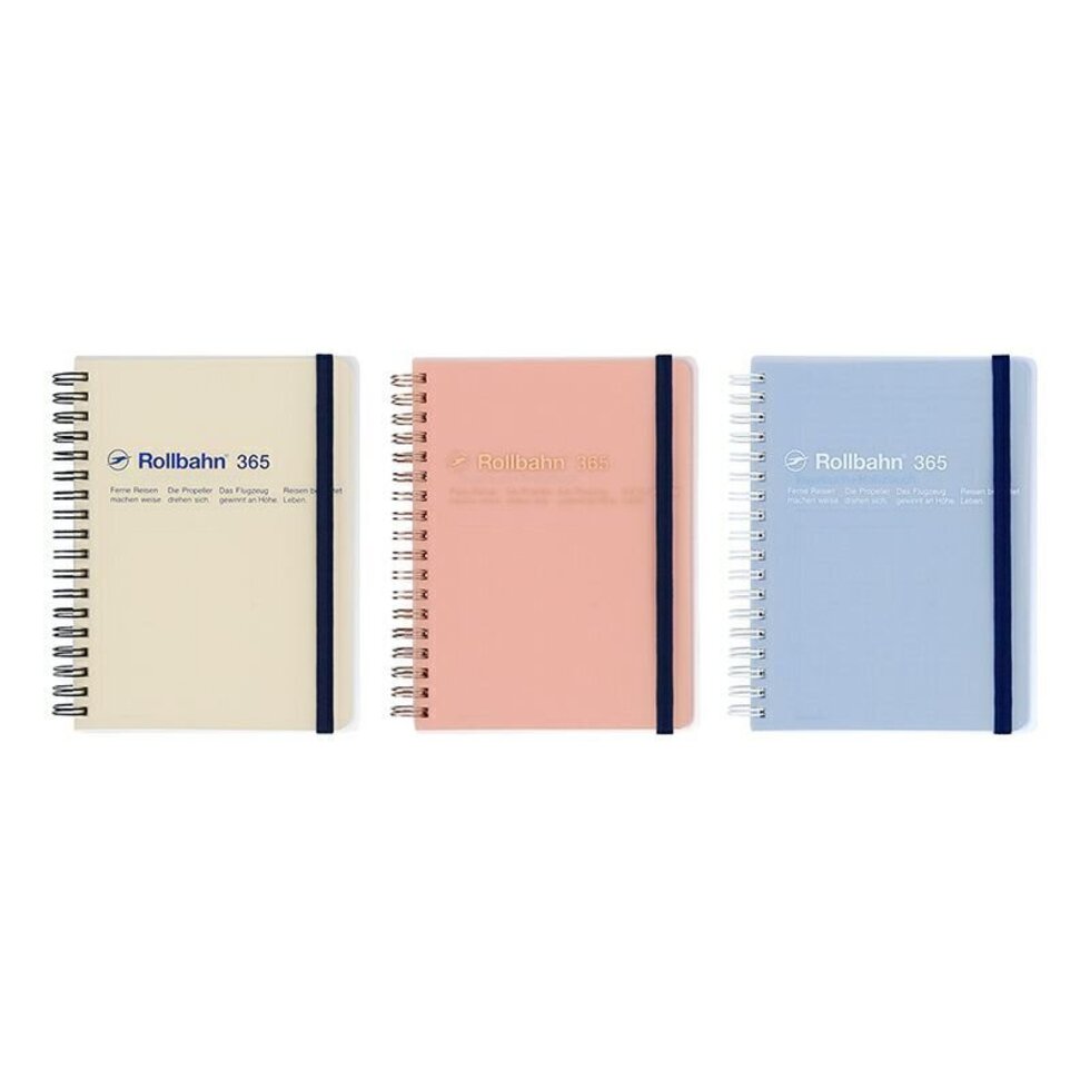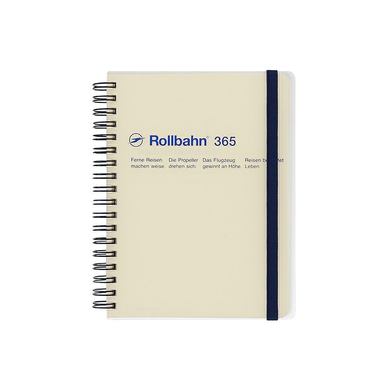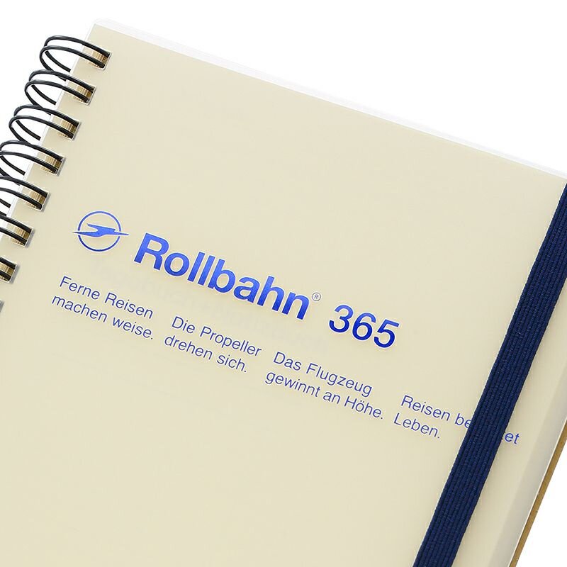 This is part of the CLEAR family with a clear, translucent cover. The "Rollbahn 365" logo on the cover is embossed with sparkling blue foil.