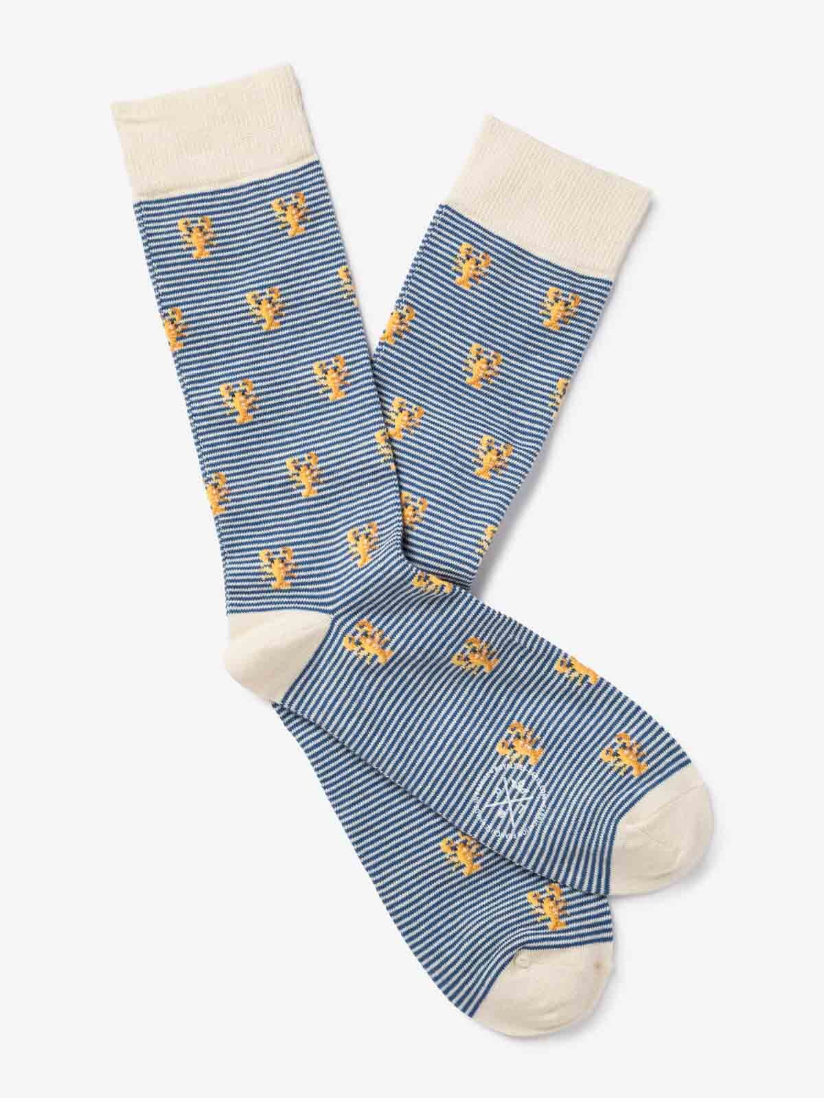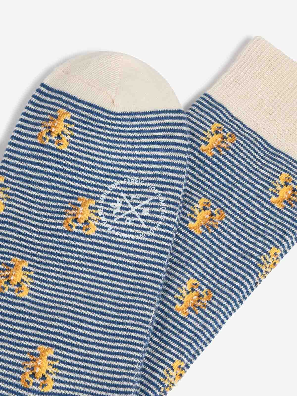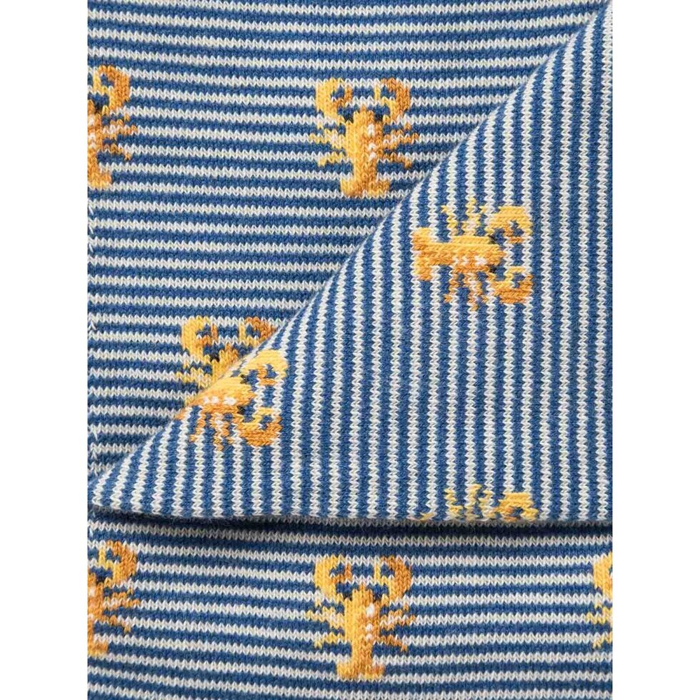 Lobster pattern socks on fine stripe background