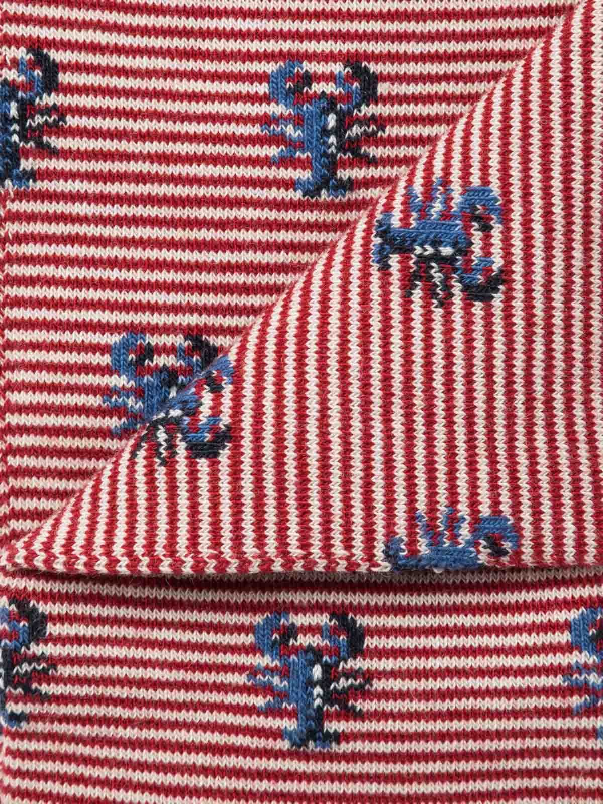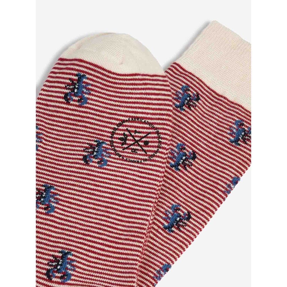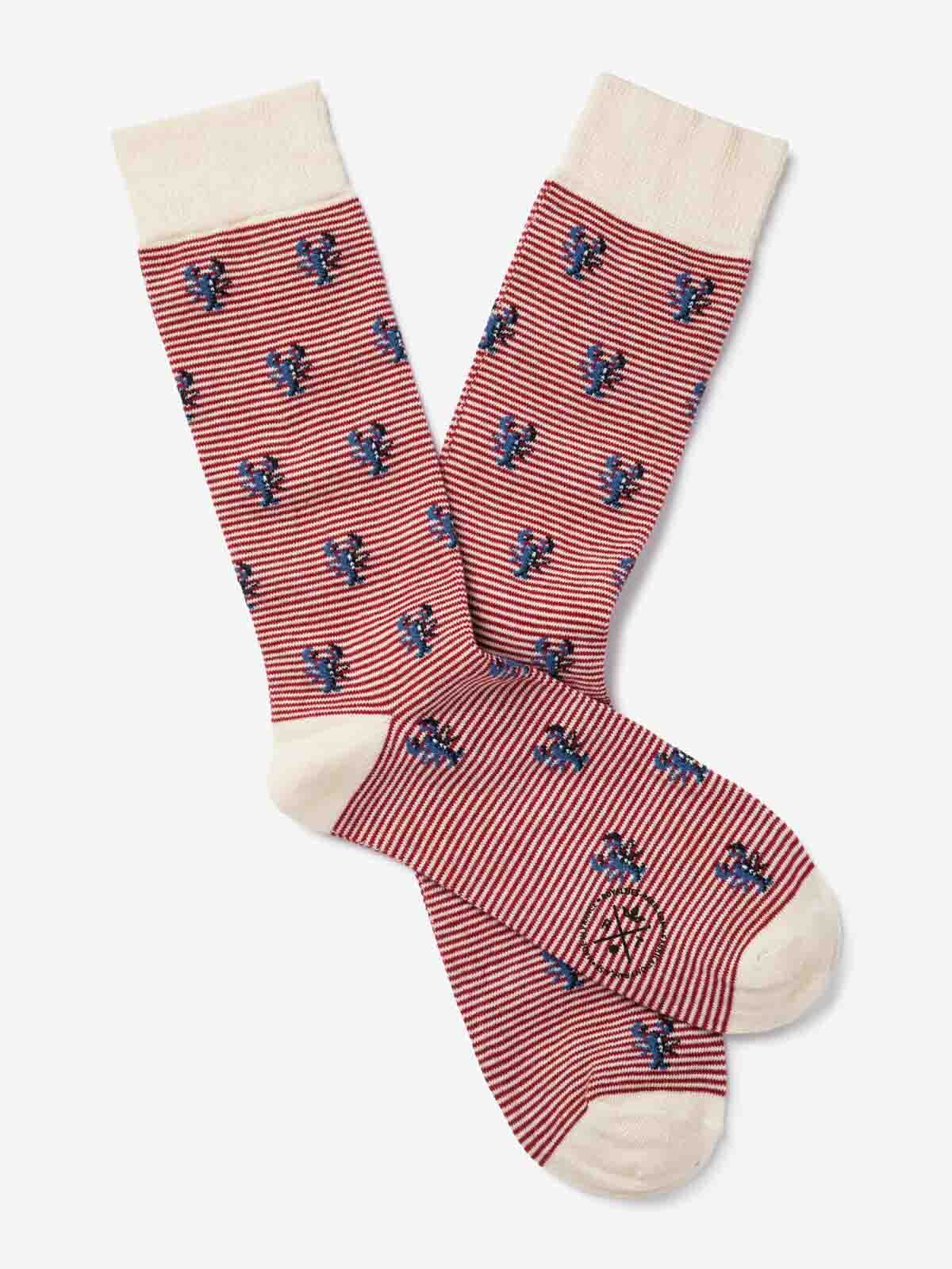 Lobster pattern socks on fine stripe background