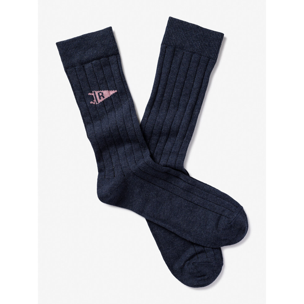 Jacquard college socks with flag and contrasting ribs.