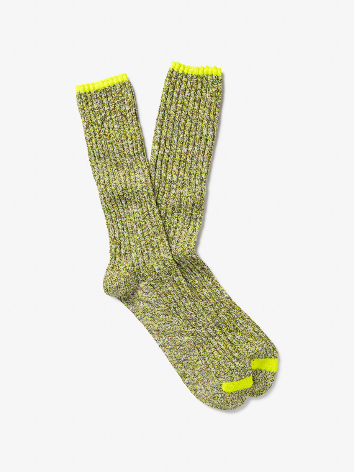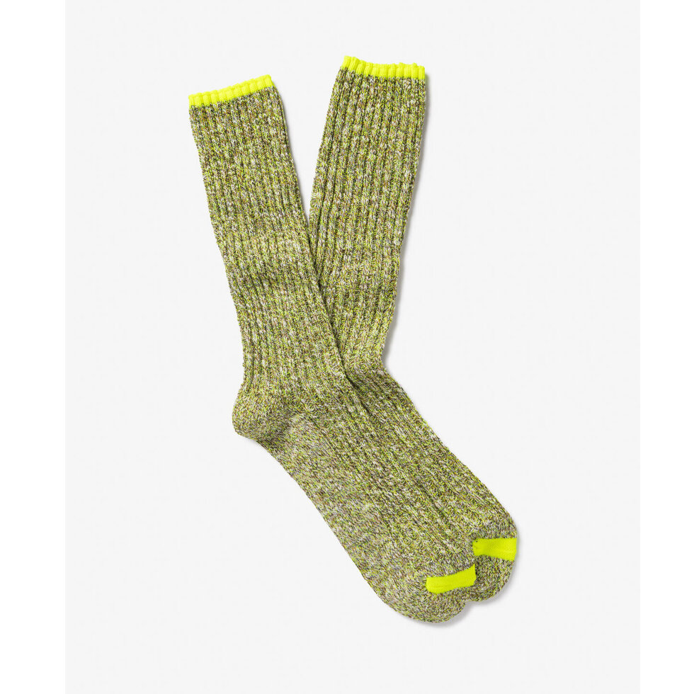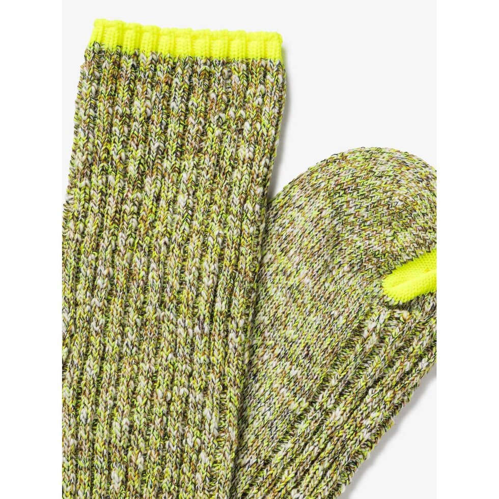 Ribbed mid-weight recycled cotton socks with fluorescent accent.