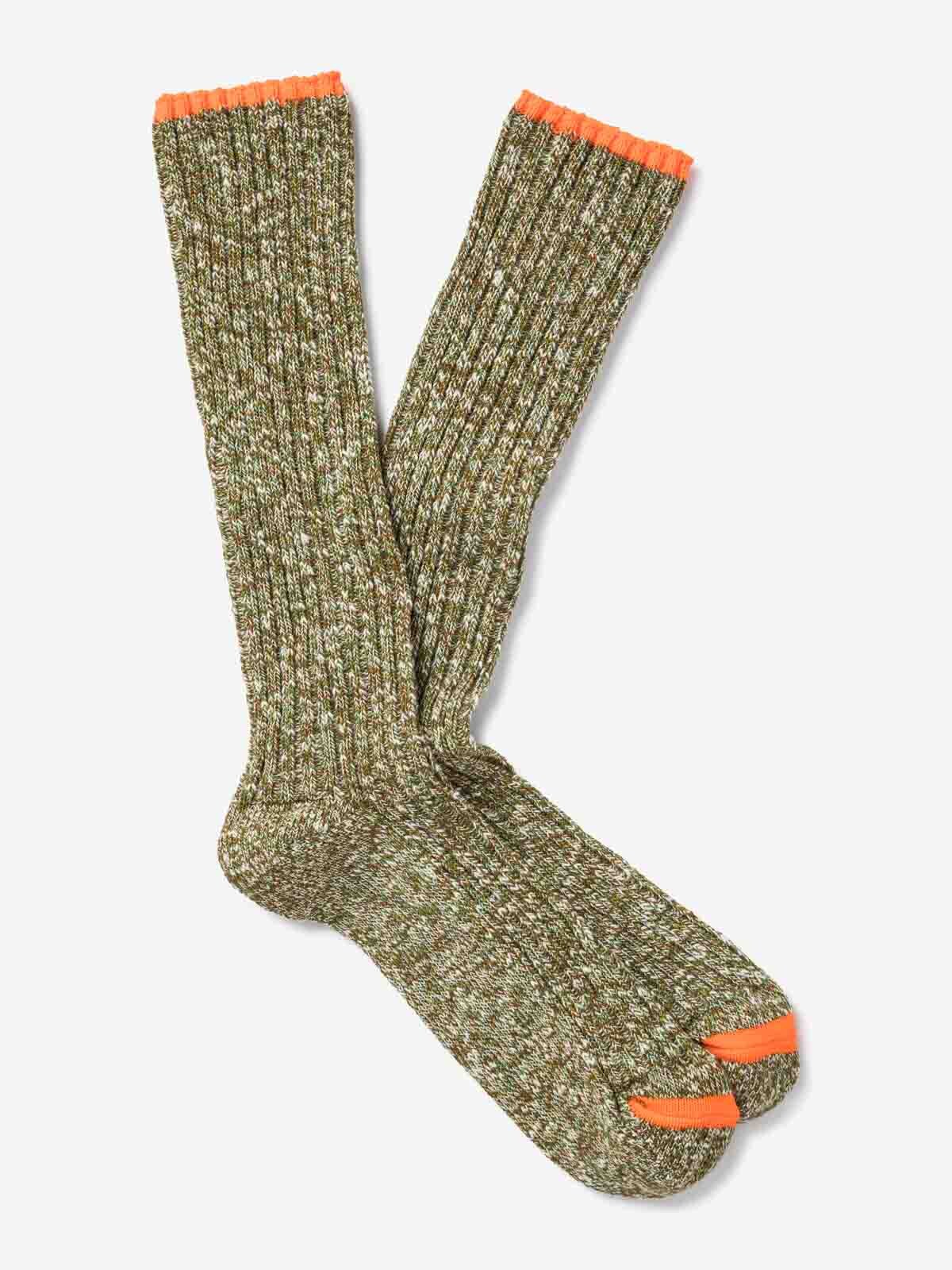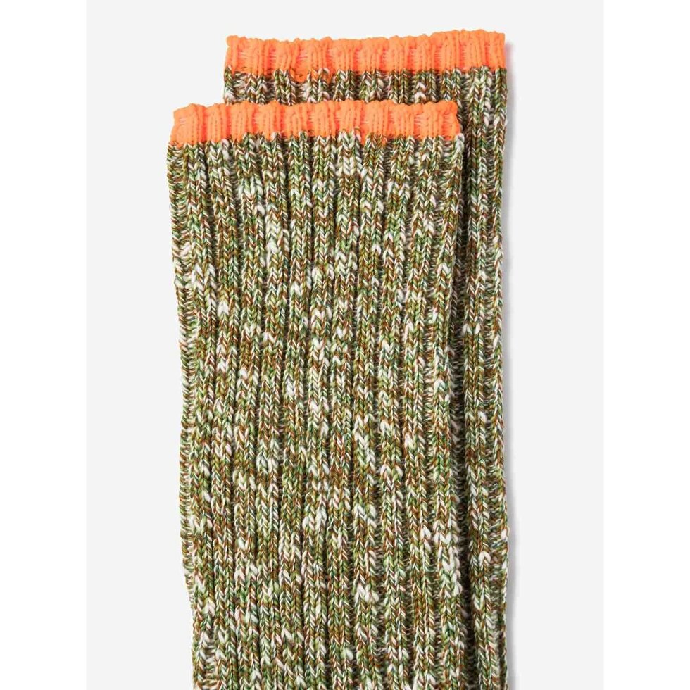 Ribbed mid-weight recycled cotton socks with fluorescent accent.