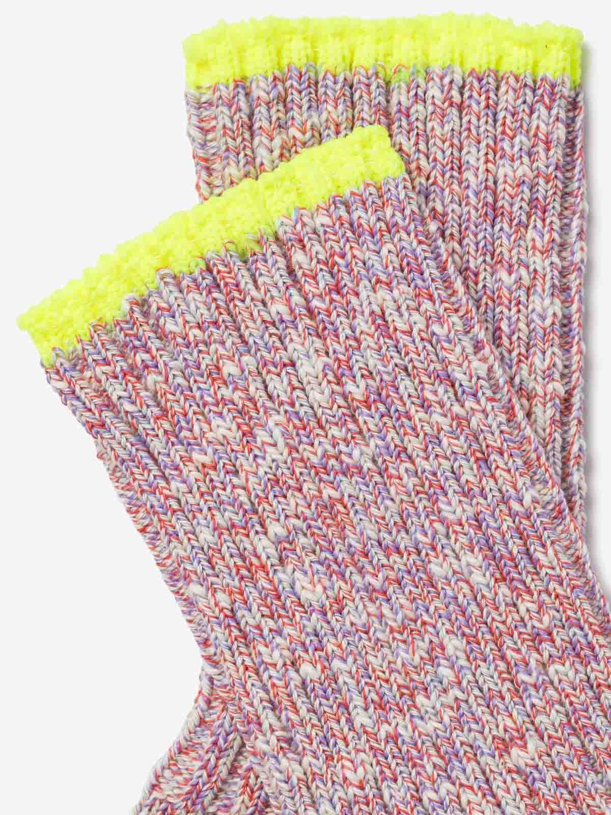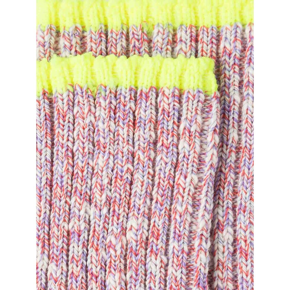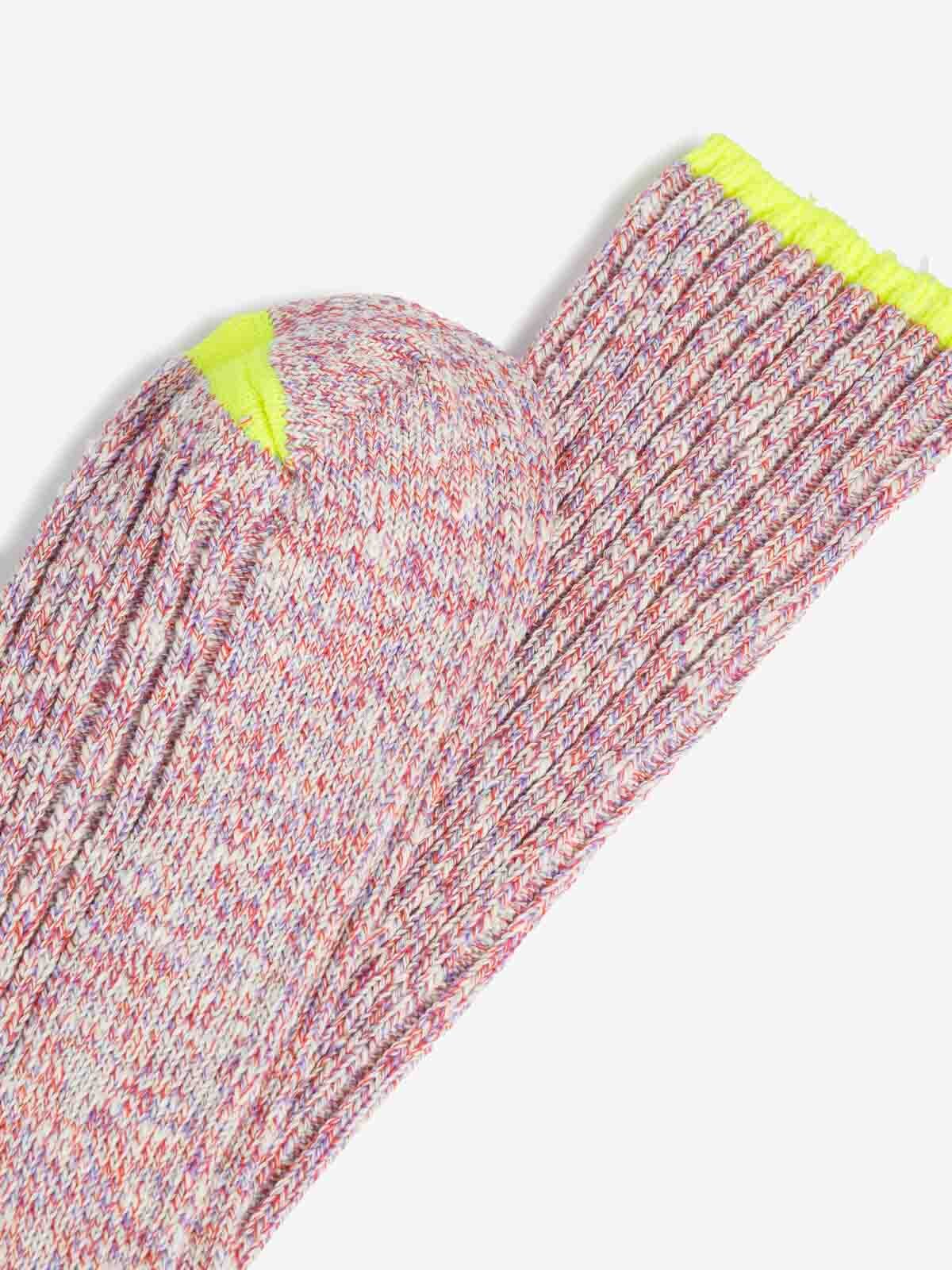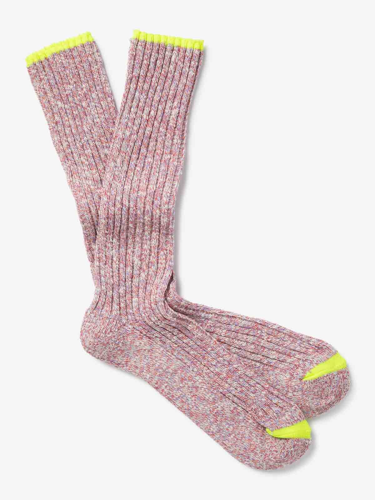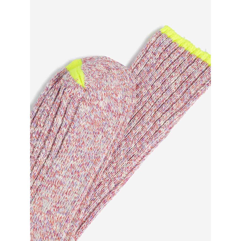 Ribbed mid-weight recycled cotton socks with fluorescent accent.