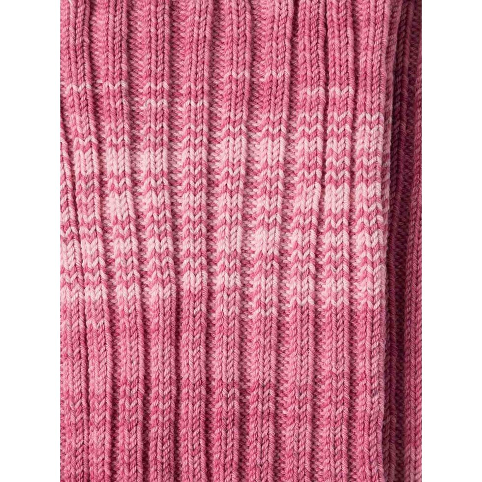 Recycled cotton, 2x2 ribbing, random weave creates one-of-a-kind effect.