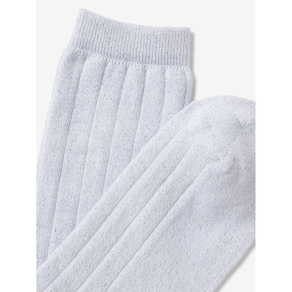 Shimmery plain socks with subtle ribbing.