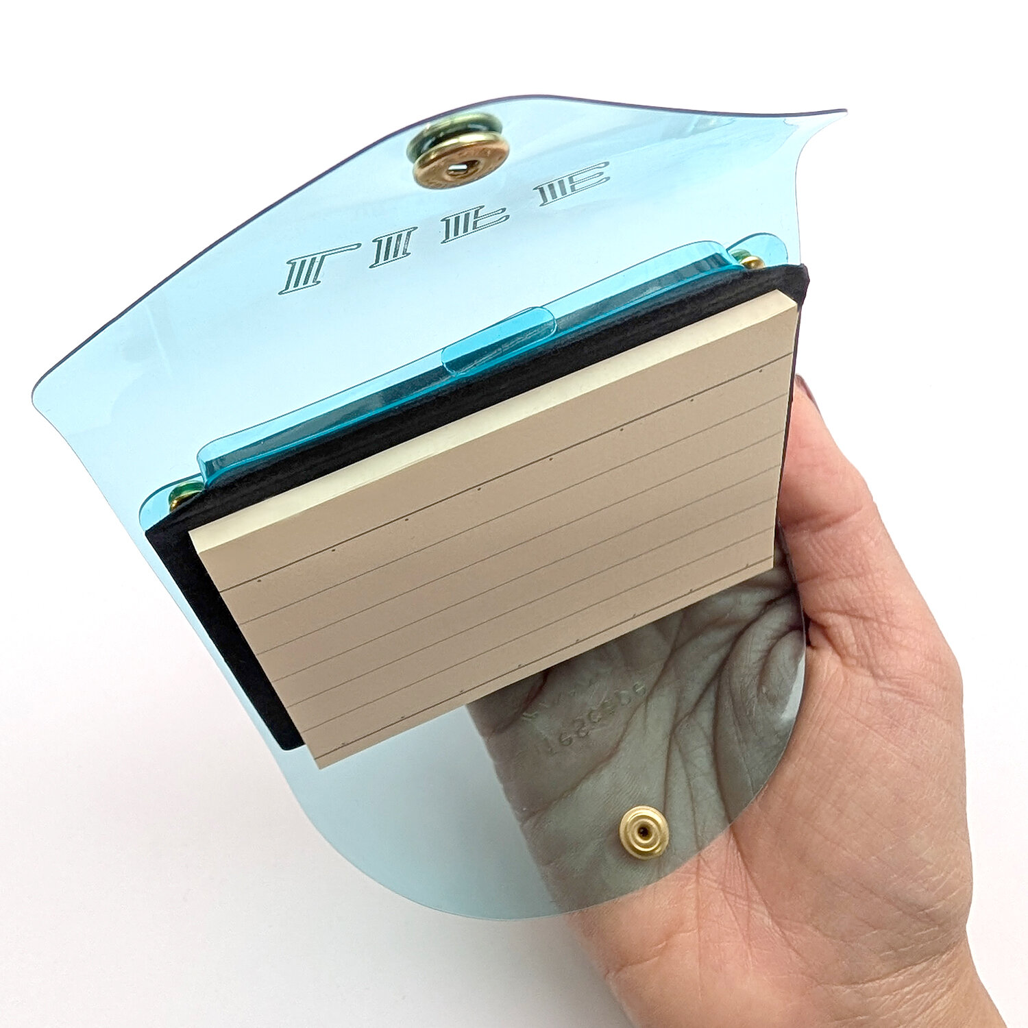 Didn't you ever secretly hope there was a way to combine mini-notebooks, sticky notes and pockets to your exact liking? Start here! This sweet little set includes a transparent PVC cover, a sticky notes pad, a 'fixing band' (to keep refills in place) and a snap extender (in case things get thick). 3-4 refills may be added - see separate listings for options.