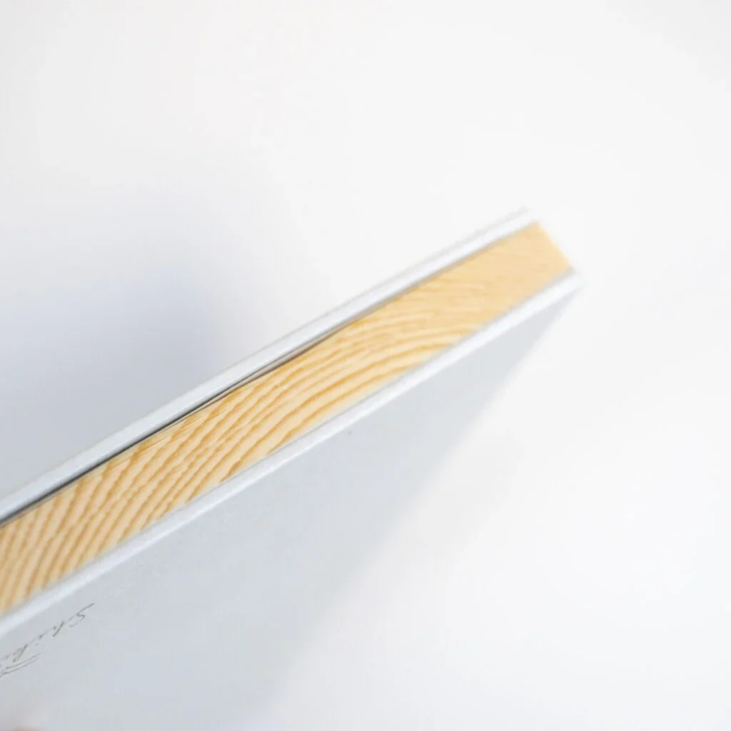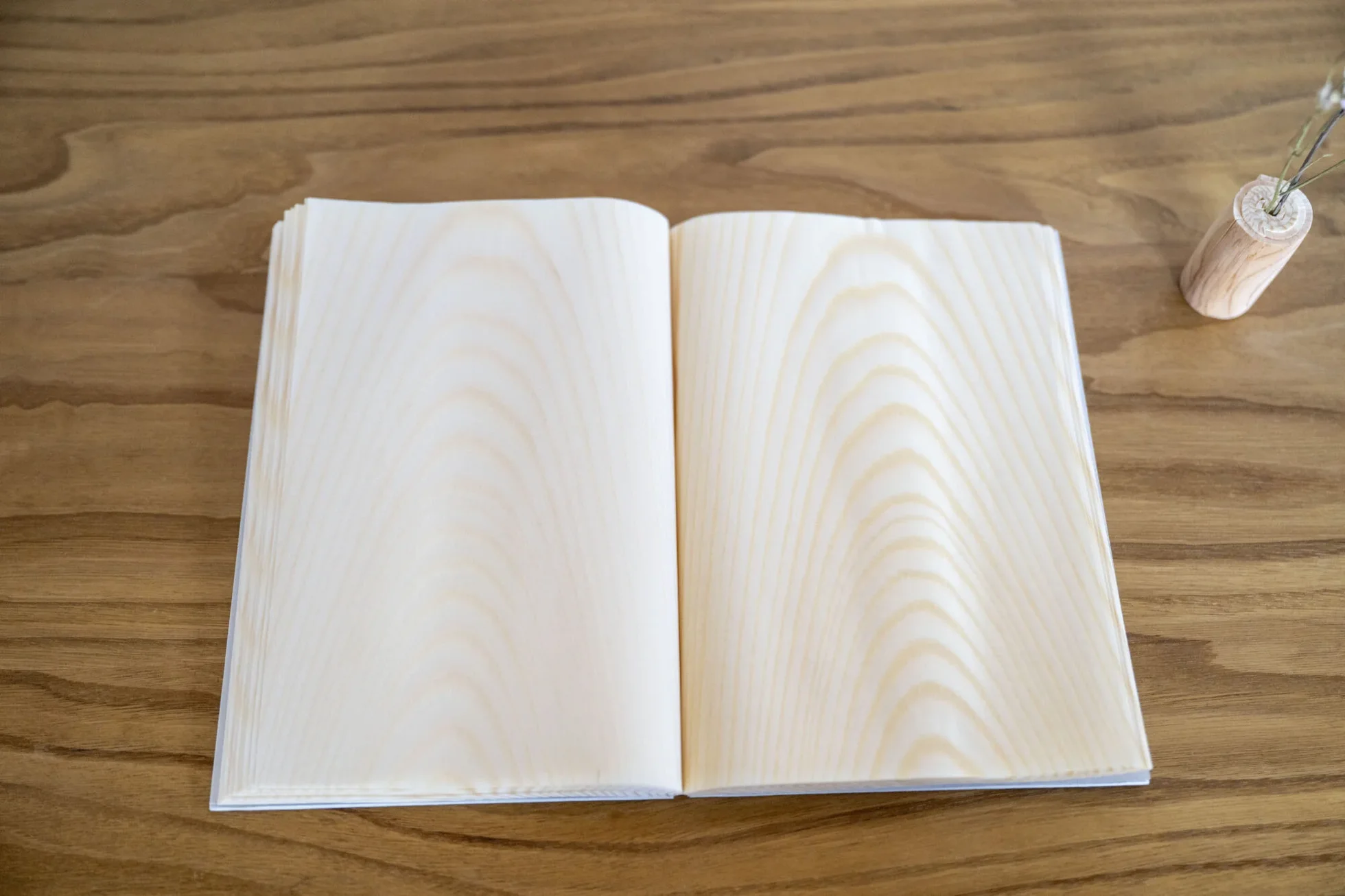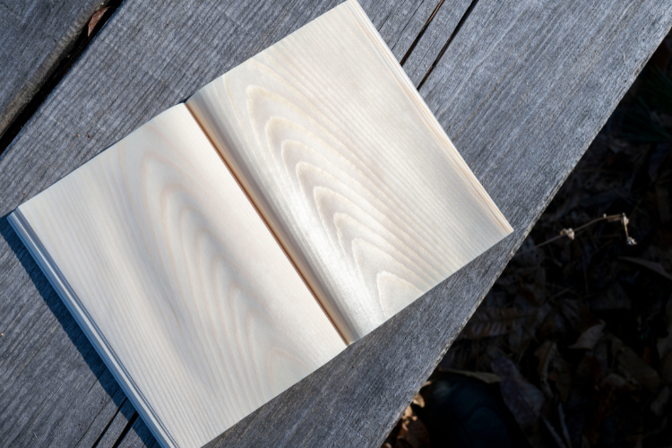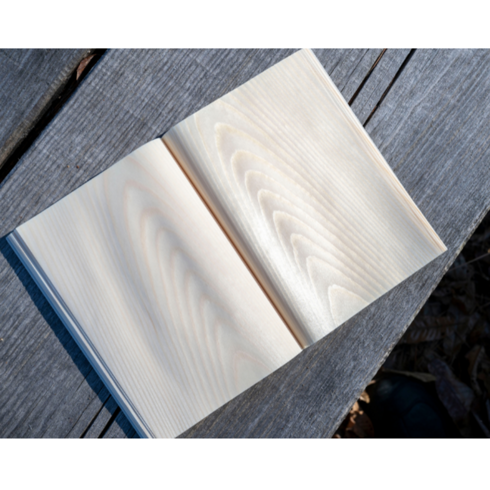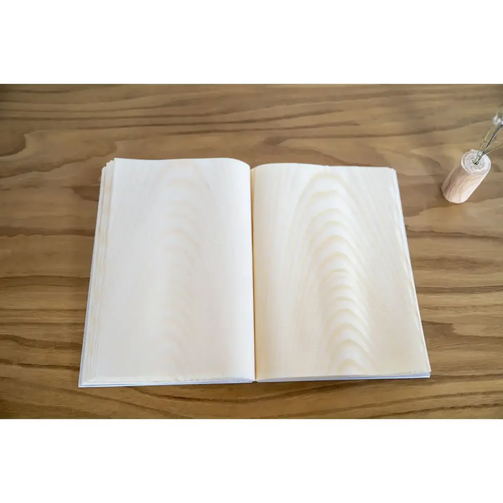 This is a 'living notebook' made from unprocessed Japanese red pine shaved to an astounding thinness and then dried. The soft fragrance of red pine is present. Each sheet of wood is individually bound.
