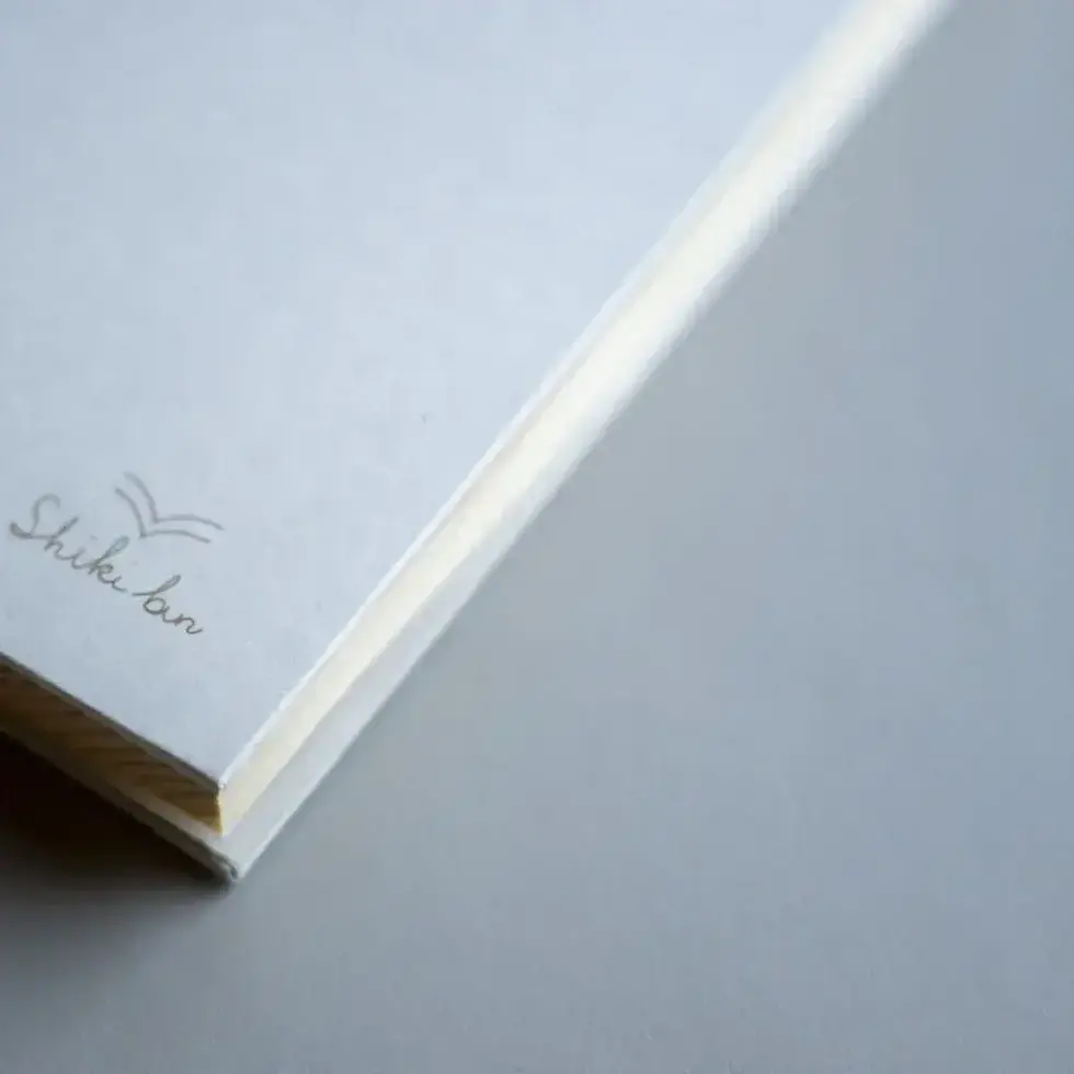 100 pages. Size B6 (5"x7"). Packaged with a light blue obi band.